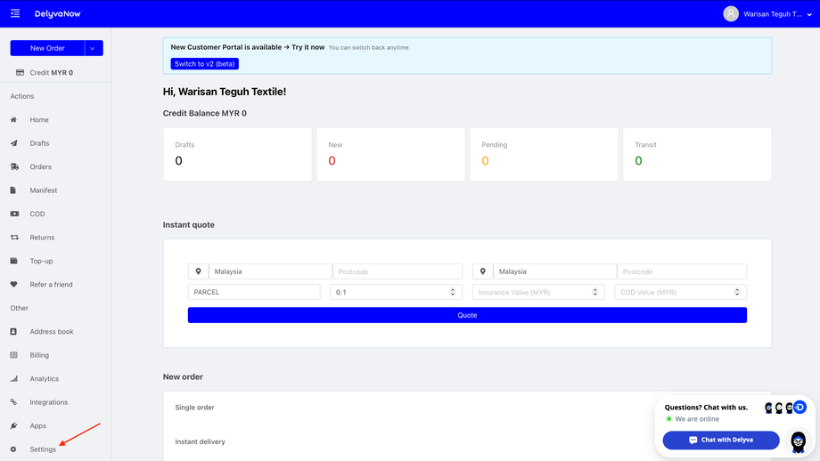 1. Go to https://my.delyva.app/customer/login and sign in to your account.