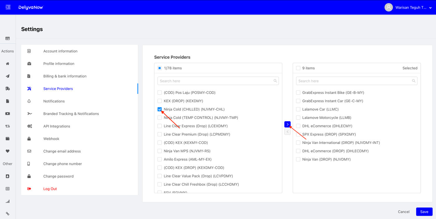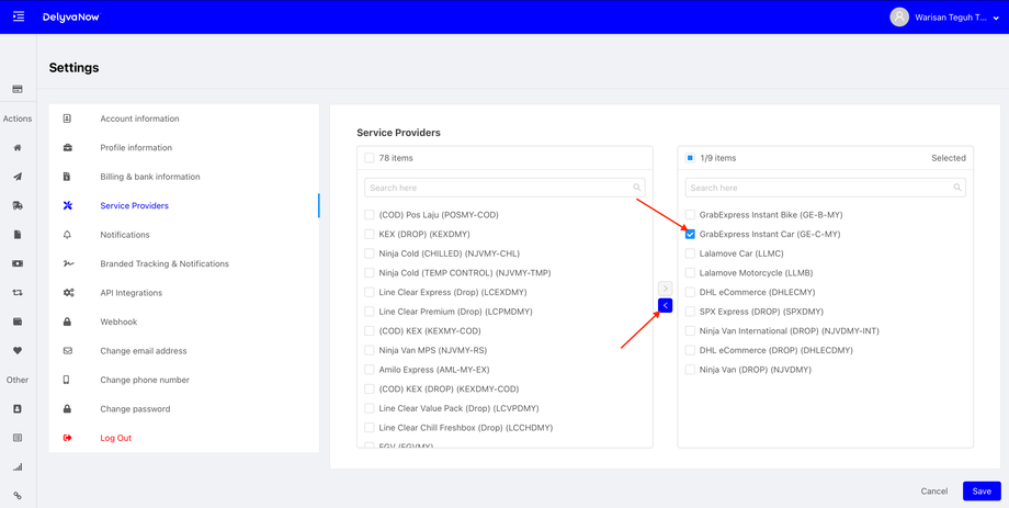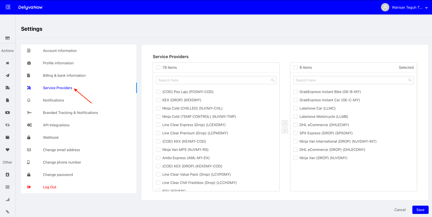 Delyva - Add or Remove Service Providers