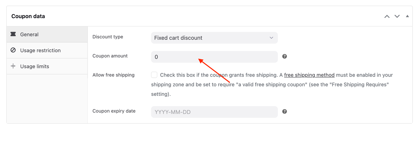 4. Enter the coupon amount without currency (i.e. : $, RM, £) or percent (%) signs.