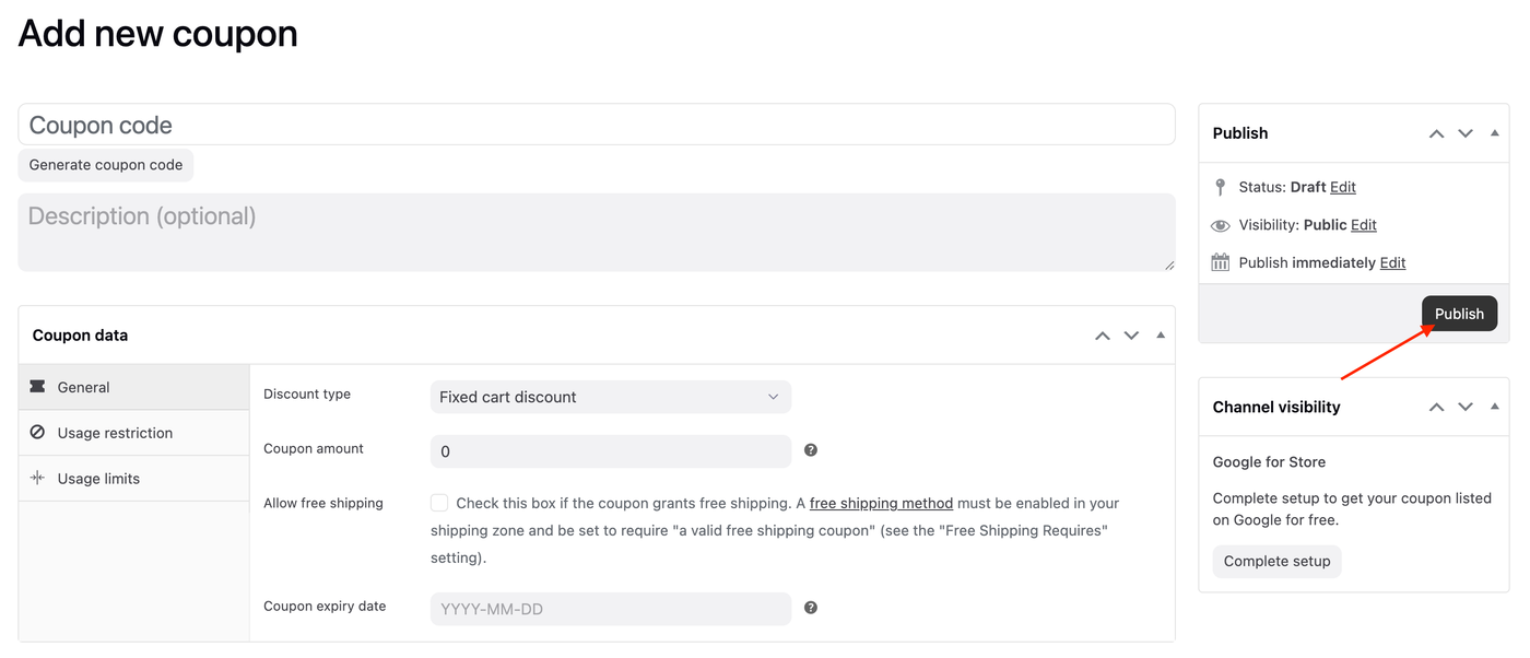 6. Click the Publish button on the right-hand side if you do not need to add any usage restrictions or usage limits (covered in the next section).