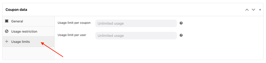 Usage limits specify how many times customers can use a coupon. There are 2 ways to limit coupon usage:
