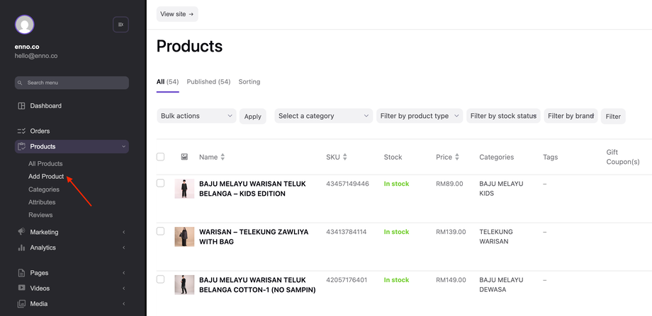 1. Go to Products > Add Product.