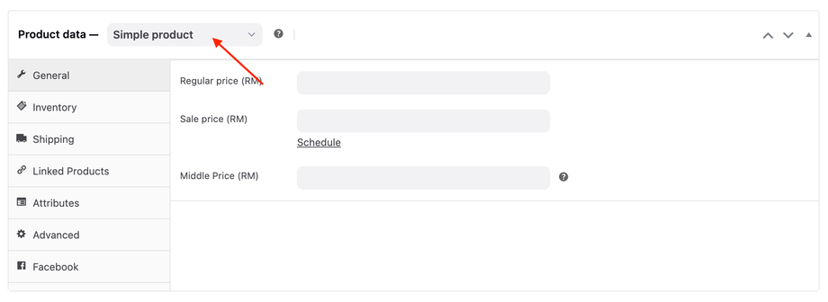 3. Scroll down to the Product Data section and select Simple Product from the dropdown menu.