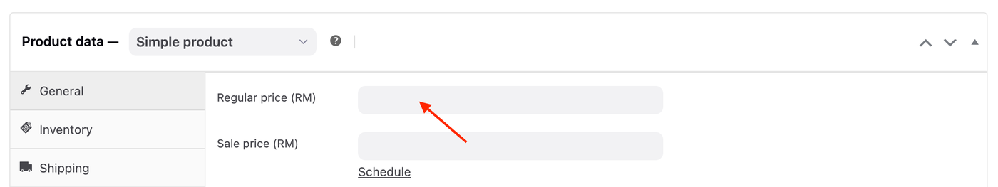 4. Under the General tab, enter the product Regular price and Sale price (if any).
