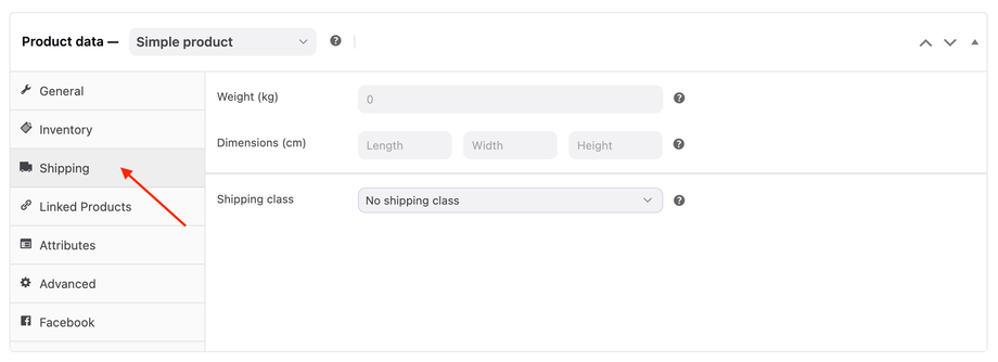 6. (Optional) Under the Shipping tab, you can enter the following details: