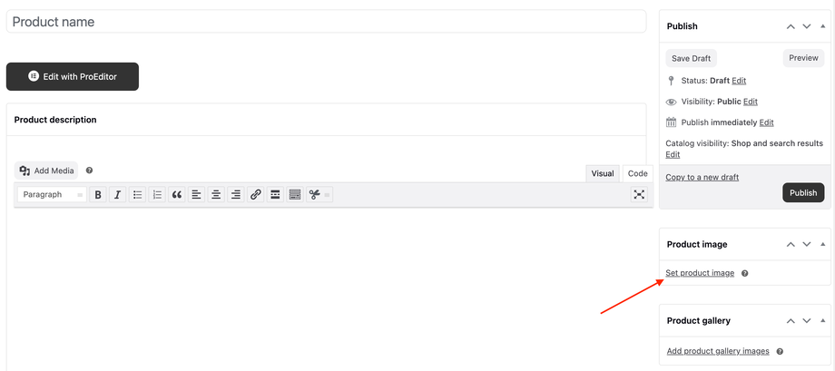 7. In the Product image panel in the right-hand column, click the Set product image link.