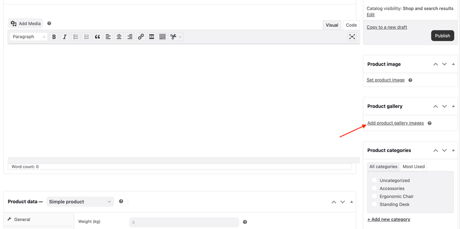 8. (Optional) In the Product gallery panel, you can upload more images by click the Add product gallery images link.